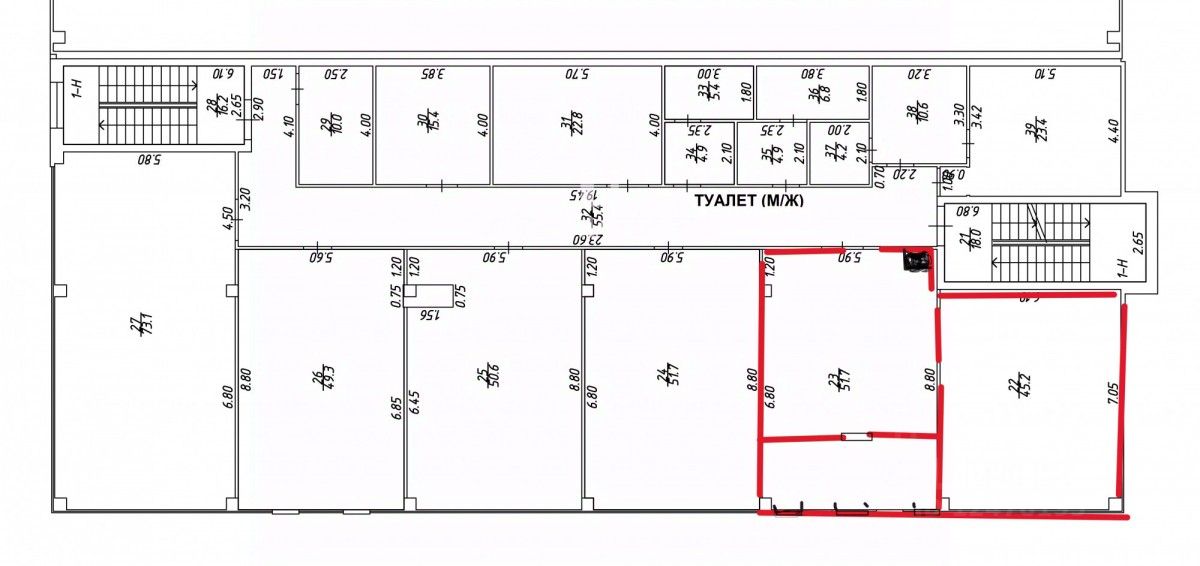 - 45,2 кв. м (общая площадь офисов — 96,6 кв. м).