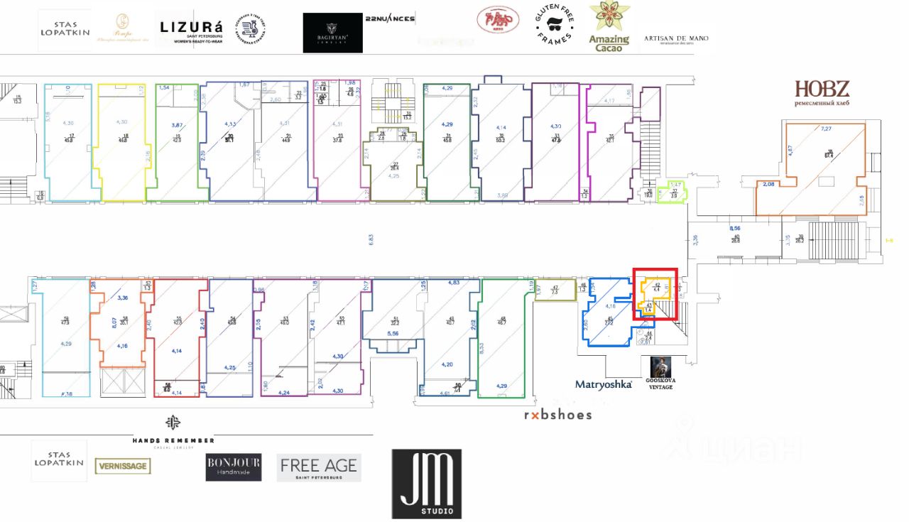 Помещение располагается на входе с Итальянской улицы и предназначено для размещения аксессуаров или ювелирного бренда.