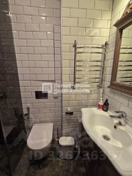 В помещении выполнен дорогой евроремонт. На полу-керамогранит с подогревом. Шпонированные поворотные двери, камин. В санузле-тропический душ с подсветкой.