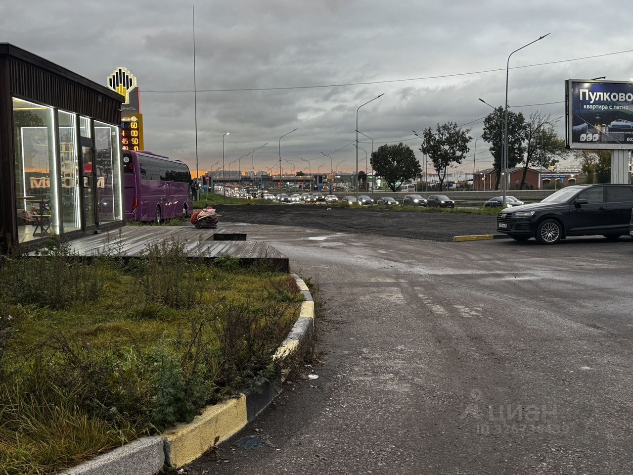 Предлагается аренда земельного участка на первой линии Пулковского шоссе с своим сквозным заездом и выездом.