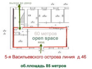 ОПИСАНИЕ: Вход и с улицы и второй вход со двора, Двор предусматривает мета для разгрузки и парковки авто -транспорта. Основное помещение open space 60. с тремя окнами и входной дверью на улицу.