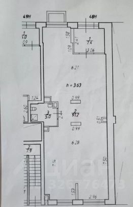 - Высота потолков - 3,63 м;