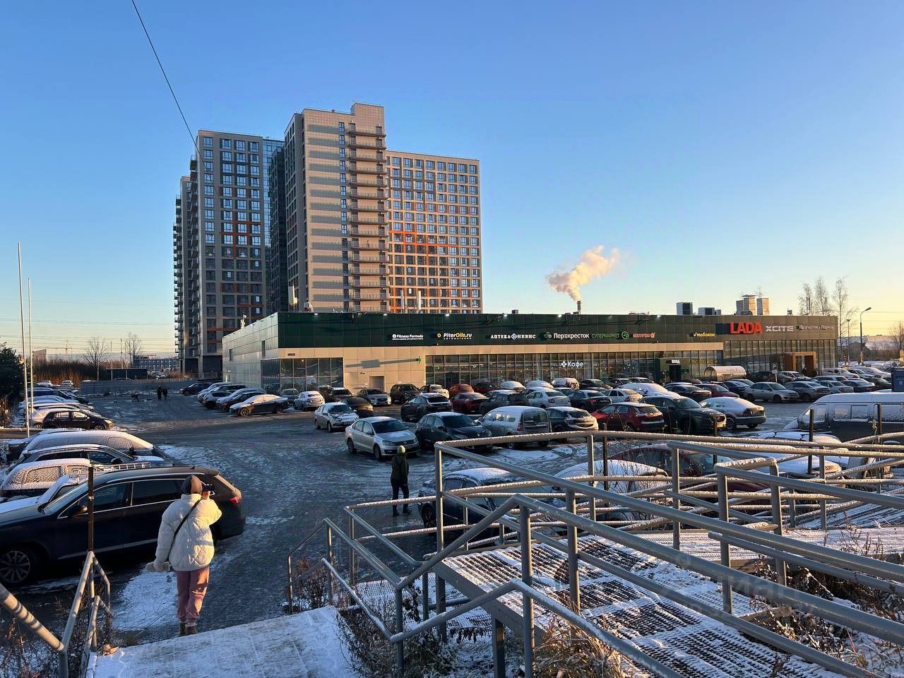 Здание расположено в 800 м. от метро Парнас, прикассовая зона супермаркета Перекресток. Крупнейший жилой массив, высокий пешеходный и автомобильный трафик.