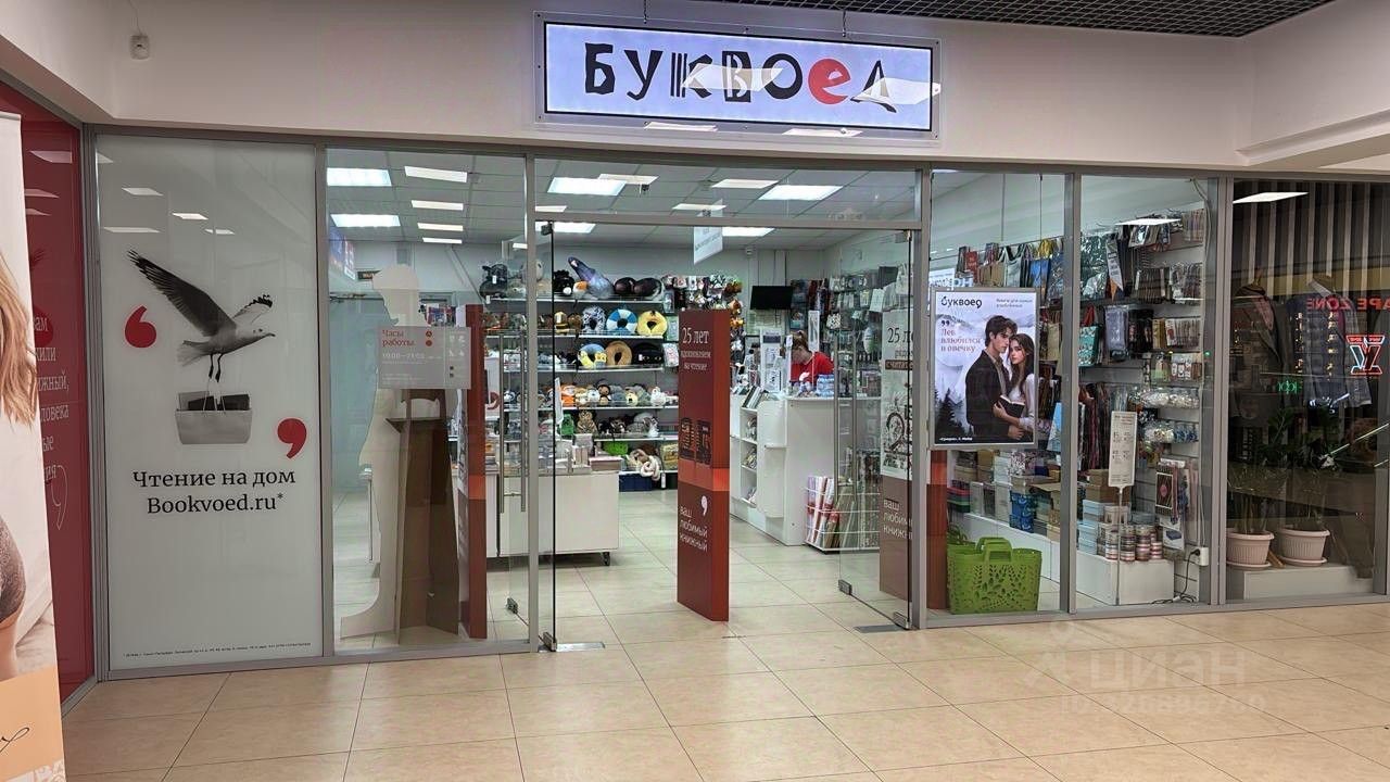 Сейчас размещен магазин Буквоед. Помещение универсальное, подойдет для торговли, услуг.