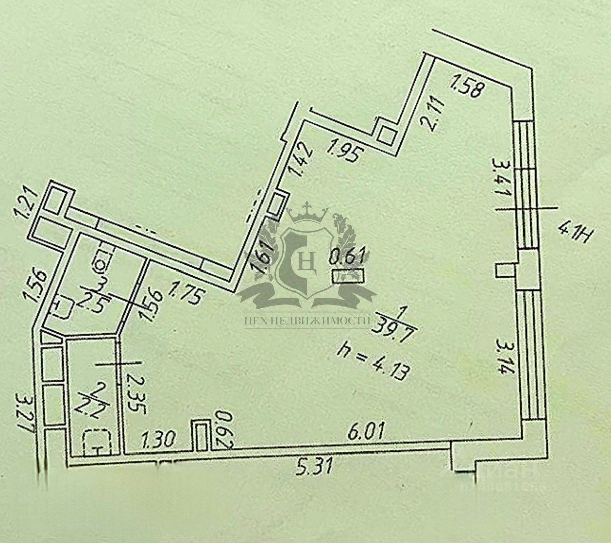 Высокие потолки 4 метра, мощность 11 кВт, отдельный вход с улицы, витринные окна, два вывода ХВС, два стояка канализации