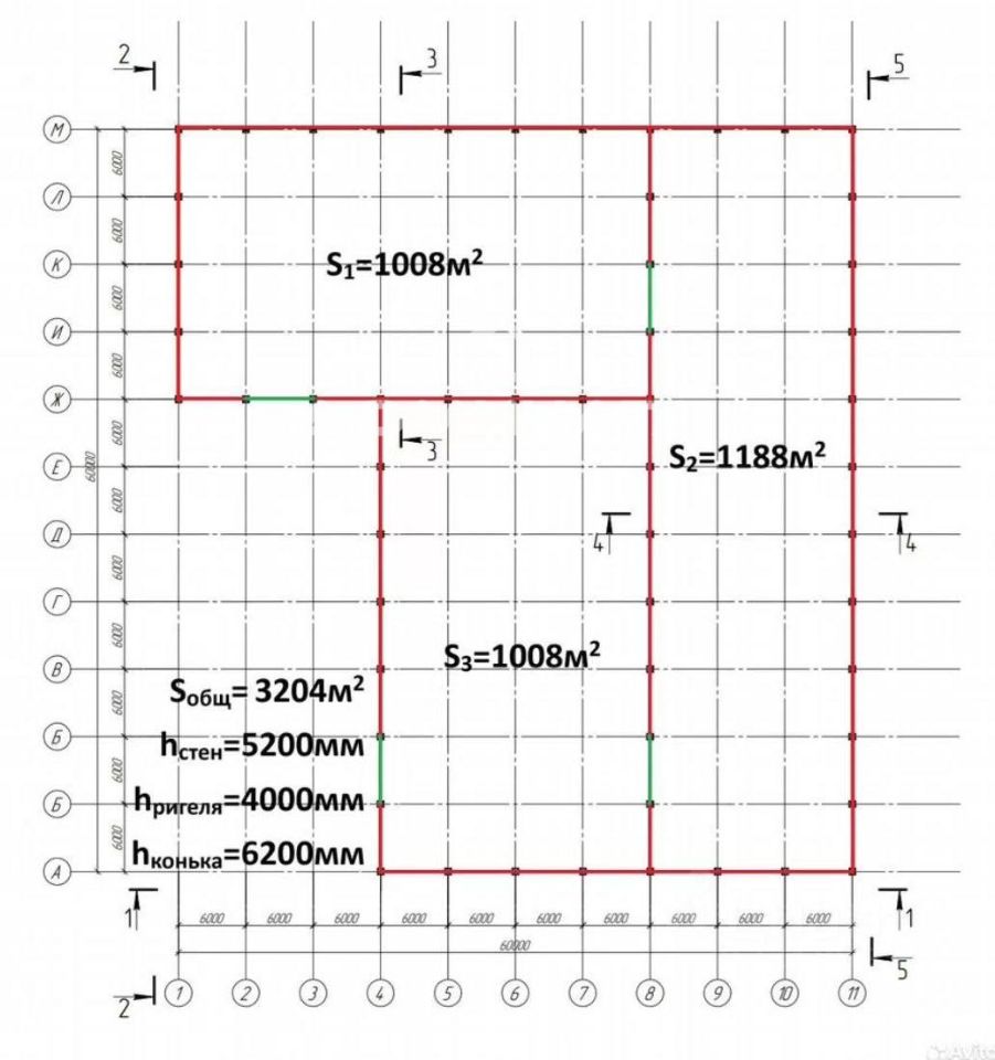 - S = 1 008 м² (включает офис 40 м² и комнату отдыха 40 м²);