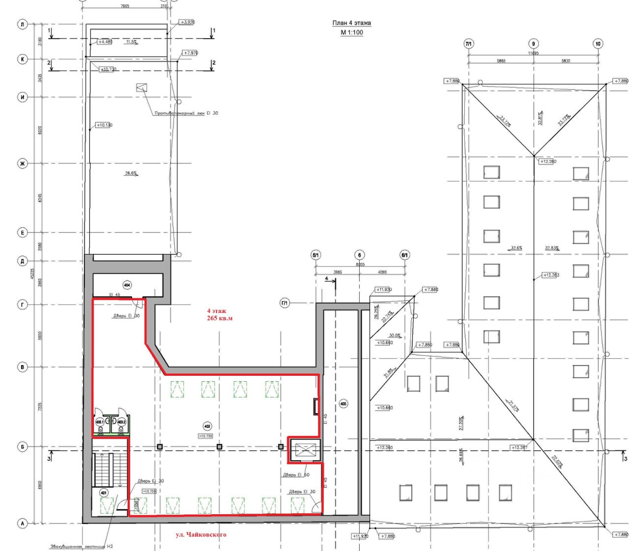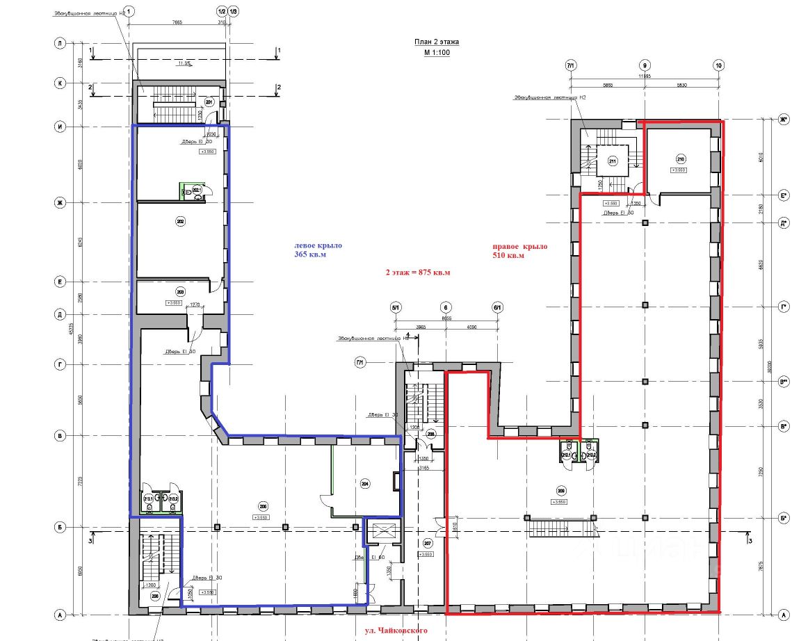 2 этаж: 875 кв.м, 3 этаж: 534 кв.м (будет увеличен до 700 кв.м), 4 этаж 265 кв.м.