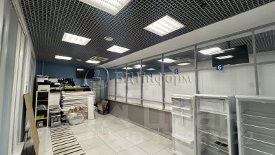 - Отделка: пол — керамогранит / ламинат, потолки — подвесные "Грильято", стены обои под окраску.