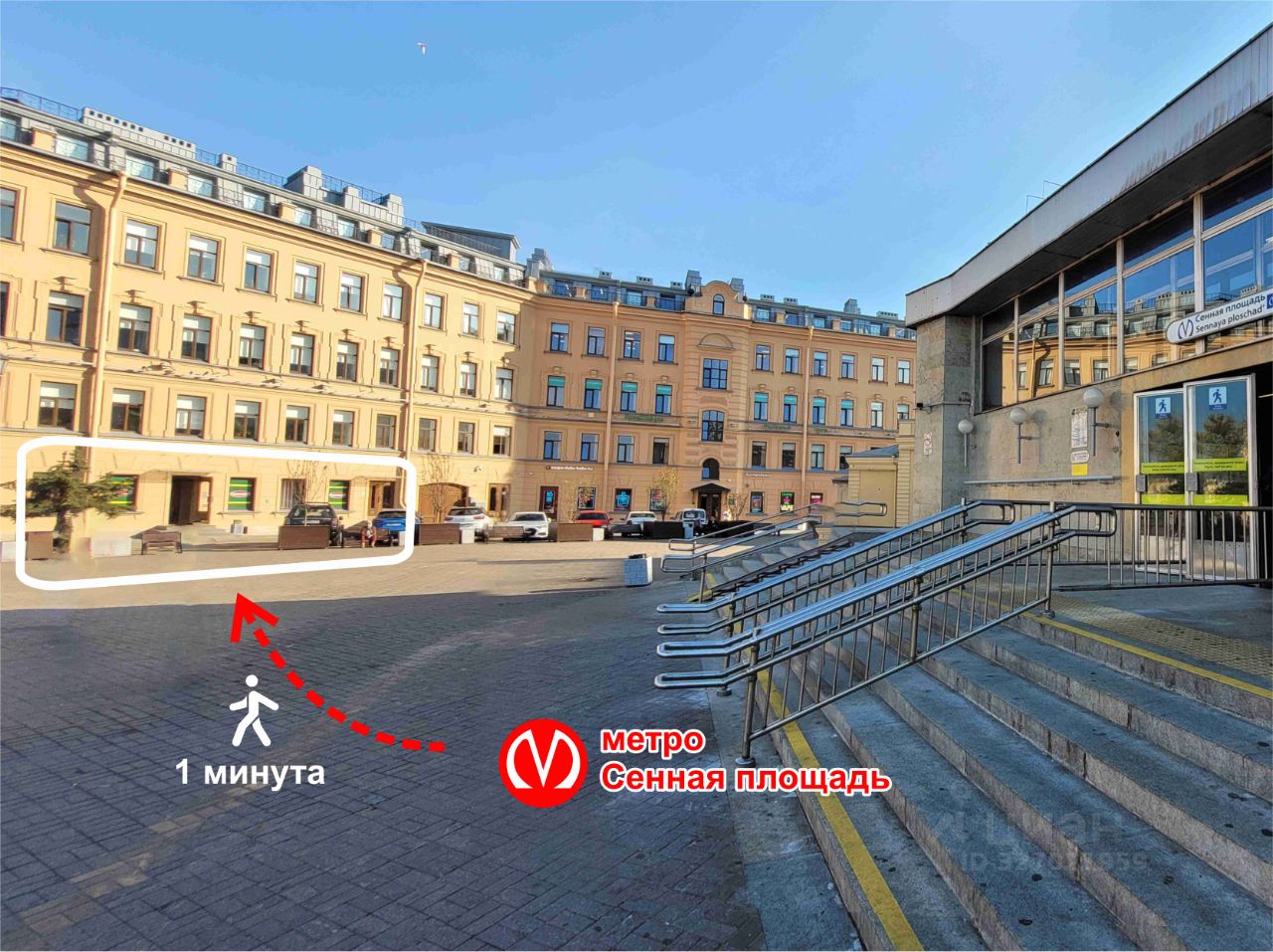 1 -ый дом от метро "Сенная площадь" также в 3-х минутах метро "Садовая" и "Спасская" и 11 минутах пешком от метро "Гостиный двор"