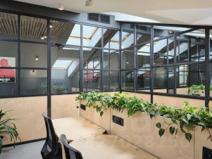 Есть оборудованная кухня, санузлы, переговорные комнаты, зона отдыха и ресепшн.