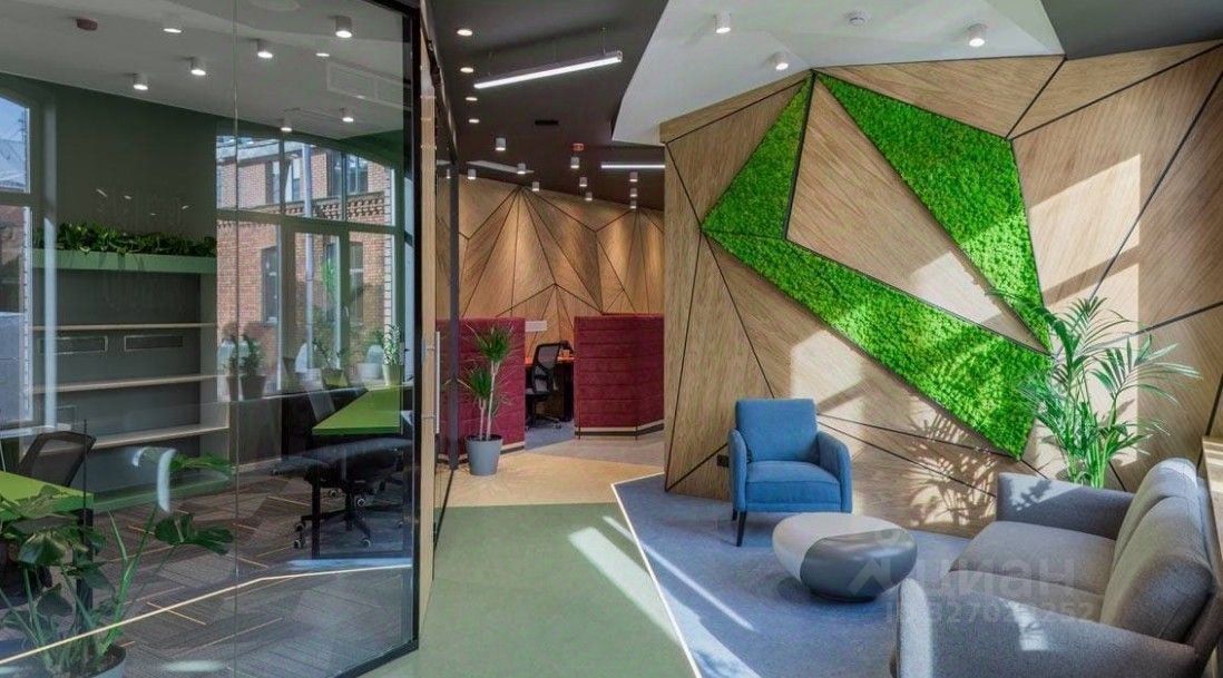 Есть оборудованная кухня, санузлы, переговорные комнаты, зона отдыха и ресепшн.