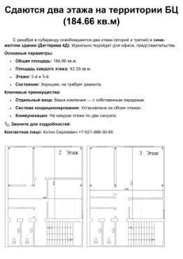 Сдаются два этажа на территории БЦ на ул. Дегтярёва 4Д (184.66 кв.м)