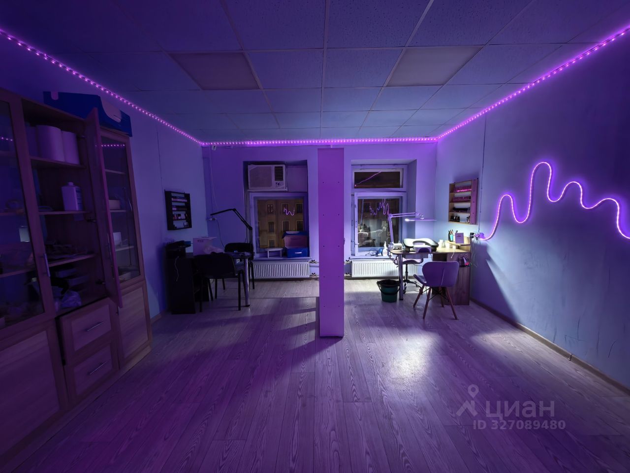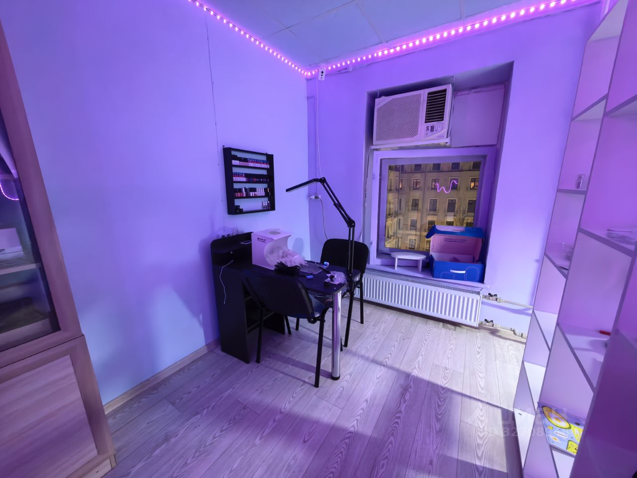 Кроме того, здесь есть необходимые для работы мастера маникюра: рабочее место с вытяжкой, стеллаж и шкаф для хранения материалов. Если вы предпочитаете использовать своё оборудование, его можно убрать.