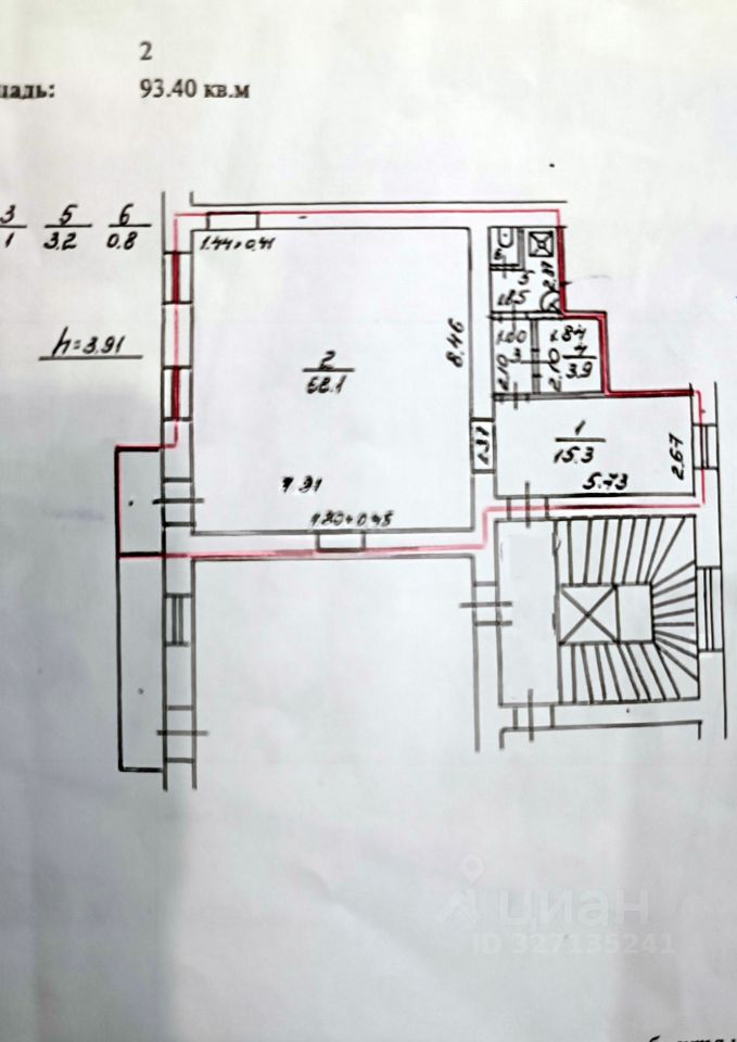 Офис площадью 93,4 кв.м. расположен в фасадной части дома на 2-м этаже