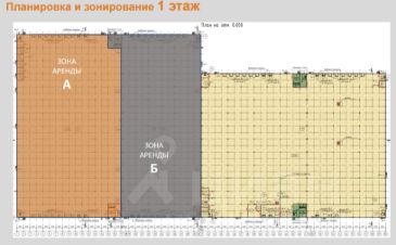 Арендная площадь разделена на две зоны — А и Б — каждая с собственной инфраструктурой.
