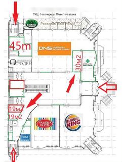 30 м² рядом с главным входом в ТЦ — 220 000 ₽ в месяц с НДС + КУ.