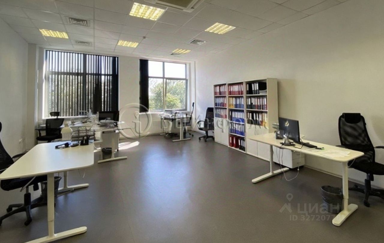 Состоит из 2х смежных кабинетов, площадь каждого около 60 м.кв. Окна на ул. Савушкина.