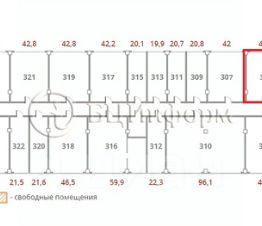Вниманию арендаторов предлагается помещение площадью 42.5 м.кв. под офисную деятельность.