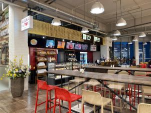 Зона посадки- 105м + летняя терасса. Посадка общая для всех посетителей ТК , можно рассмотреть аренду посадочной зоны только под ваше кафе.