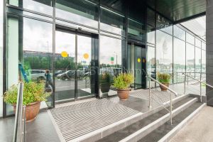 В хорошем состоянии. Выполнена качественная офисная отделка. Окна витринные, на полу ламинат, светлые стены, потолок типа "Армстронг".