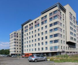 Перед зданием открытая парковка.