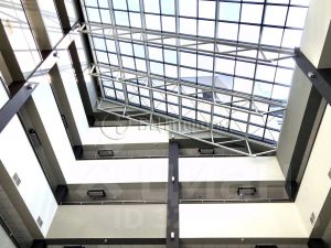 Коридорная линия сформирована вокруг атриума. Кабинеты различной площади, преимущественно открытой планировки. Большое количество окон. Установлены системы вентиляции и кондиционирования. Смонтированы локальные сети.
