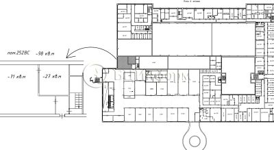 Помещение состоит из двух комнат (~71 м.кв. и 27 м.кв.).