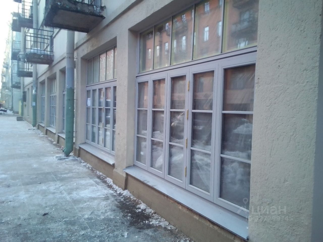 1-й этаж, Большие витрины с расстекловкой по всей фасадной части дома. (6 витрин на ул Рубинштейна)