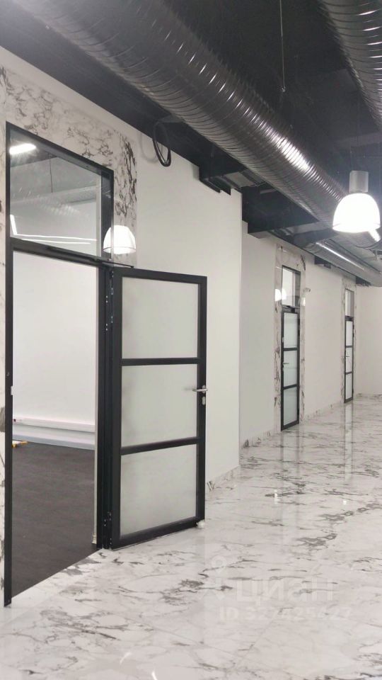 Описание помещения: Офисный блок с типовой отделкой-полы ламинат, стены обои под покраску, потолок окрашен в черный цвет-установлены светодиодные лампы, собственный санузел.