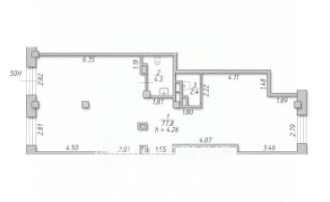 1й этаж, отдельный вход с улицы, витринные окна, площадь 84,5 м² (открытый зал + 2 санузла), высота потолков 4,26 м.