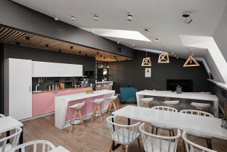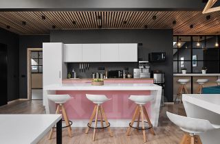 Есть оборудованная кухня, санузлы, переговорные комнаты, зона отдыха и ресепшн.
