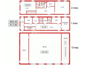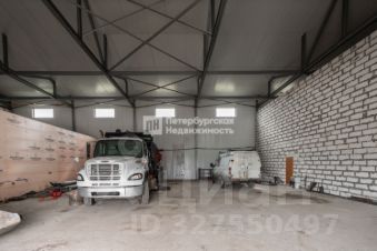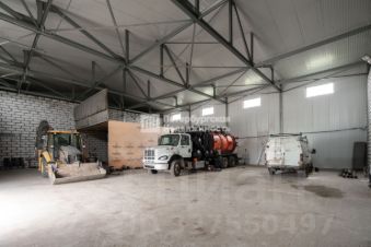 Общая площадь складского-производственного помещения 590 кв.м. с высотой потолков 7 метров и ямой для ремонта техники, пять ворот для въезда.
