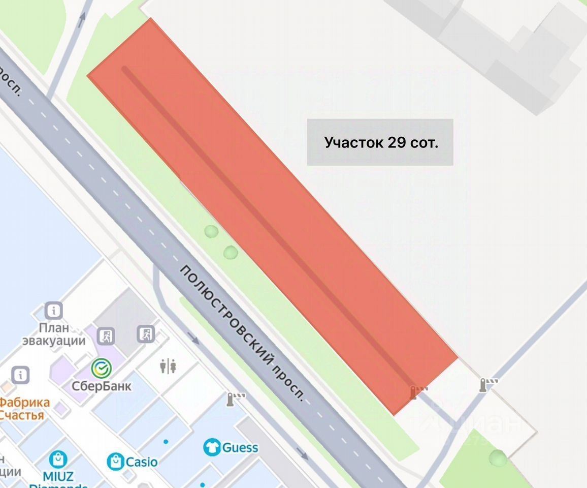 Участок расположен в непосредственной близости к ТЦ Европолис и в пешей доступности к станции метро Лесная.