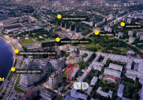 Рядом бизнес-центры и жилые дома, напротив помещения парковка для клиентов с заездом под шлагбаум, есть подземный паркинг.