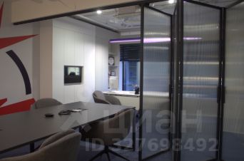 Помещение разделено на 2 секции стеклянной перегородкой, которая может изменять внутреннюю структуру помещений с open space на кабинетную.