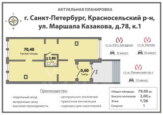 Предлагаем вашему вниманию помещение площадью 80 м² в 26-этажном комплексе с развитой инфраструктурой.