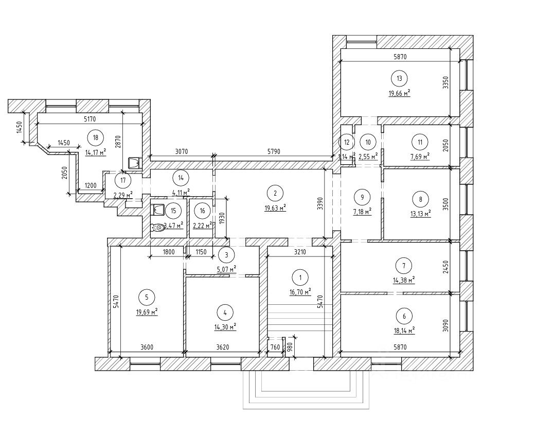 В офисе есть общий коридор,кабинеты,кладовые,тамбуры перед кабинетами,кухня и санузел. Кухня - 14, 17 м2, Санузел - 3, 47 м2