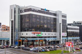 На первых двух этажах здания размещены разнообразные магазины - продуктовый гипермаркет Eurospar на 4 000 м², гипермаркет электроники "М.Видео", магазин косметики и парфюмерии "Иль де Ботэ", магазин текстиля "Togas", студии интерьера и дизайна, детский развлекательный центр Mouse House, ресторан R14, и многие другие.