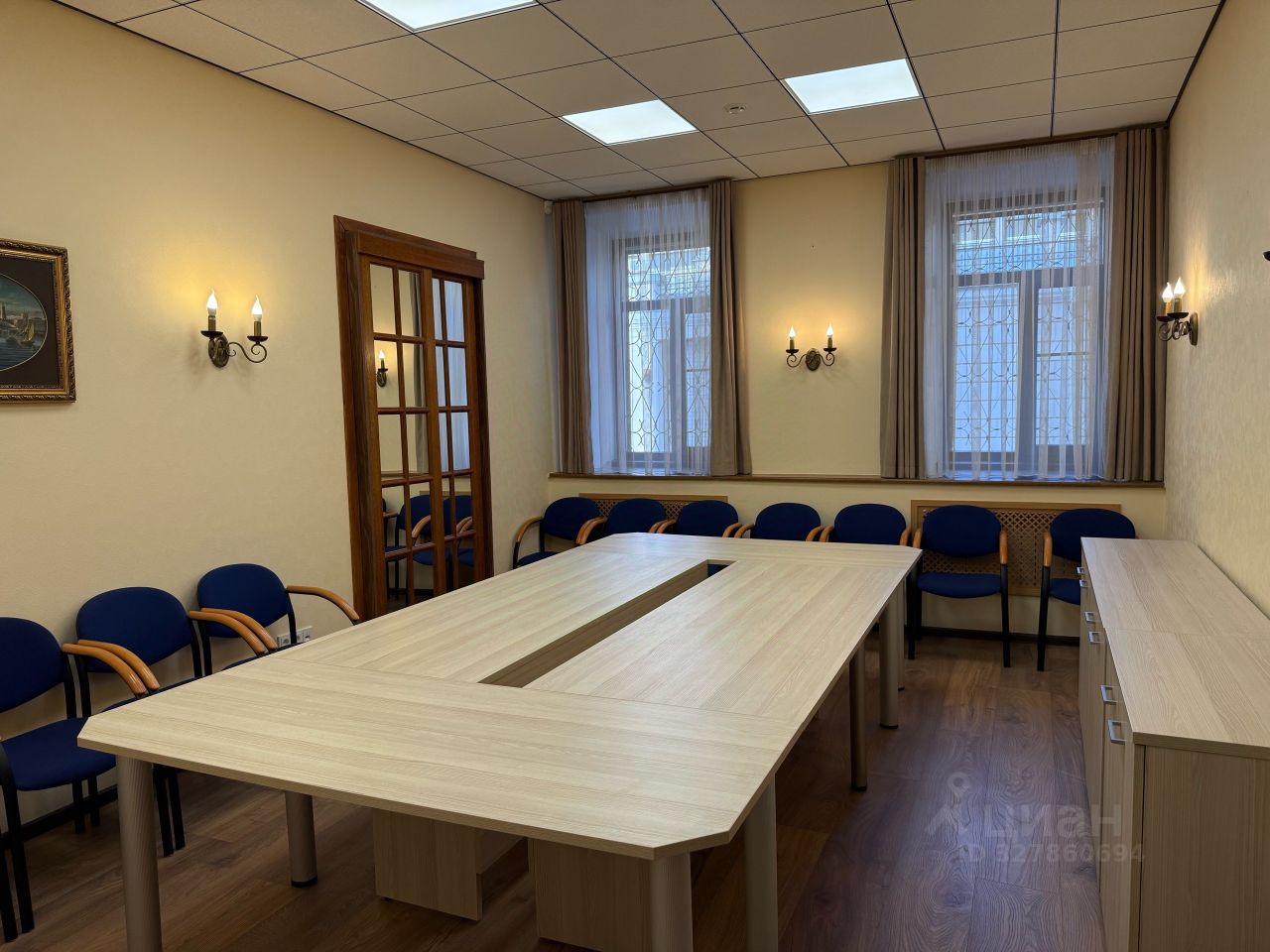 - Переговорная с круглым столом оборудована на 12 посадочных мест