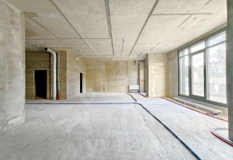 -Без отделки, шлифовка швов бетонирования, полы без стяжки, установлены радиаторы и счетчики.
