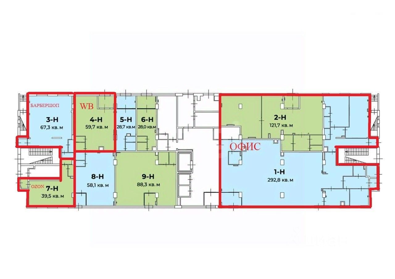 Cоceдние арендаторы: ОZОN, WВ, Барбершоп.