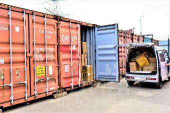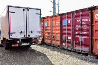 Подъезд к воротам контейнера на грузовом и легковом транспорте.
