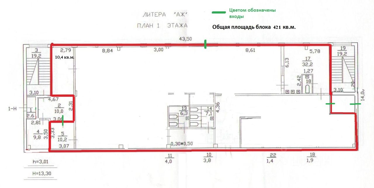 Сдается в аренду от собственника универсальное помещение 421 кв.м. (склад, производство, офис), расположенное на 1 этаж, три отдельных входа (роллета 2*2,5 м., трехстворчатая дверь 1,9*1,9 м., обычная входная дверь). Высота потолка 3,1 м., окна- стеклопакеты 11 шт. (много света). Помещение оборудовано 3 санузлами и небольшими офисно-подсобными помещениями (10,4 и 32,2 кв.м.). Прилегающая асфальтированная территория, имеется парковка для арендаторов и посетителей, столовая, дополнительные офисные помещения от 20 до 400 кв.м., территория охраняемая с круглосуточным доступом.