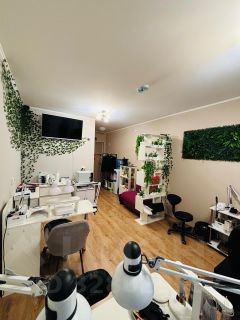 Помещение: светлое, уютное, продумано до мелочей — идеально подойдёт для комфортной работы и приёма клиентов. В кабинете есть рабочее место для маникюра, удобное кресло для педикюра, качественное освещение, системы хранения и всё необходимое оборудование.