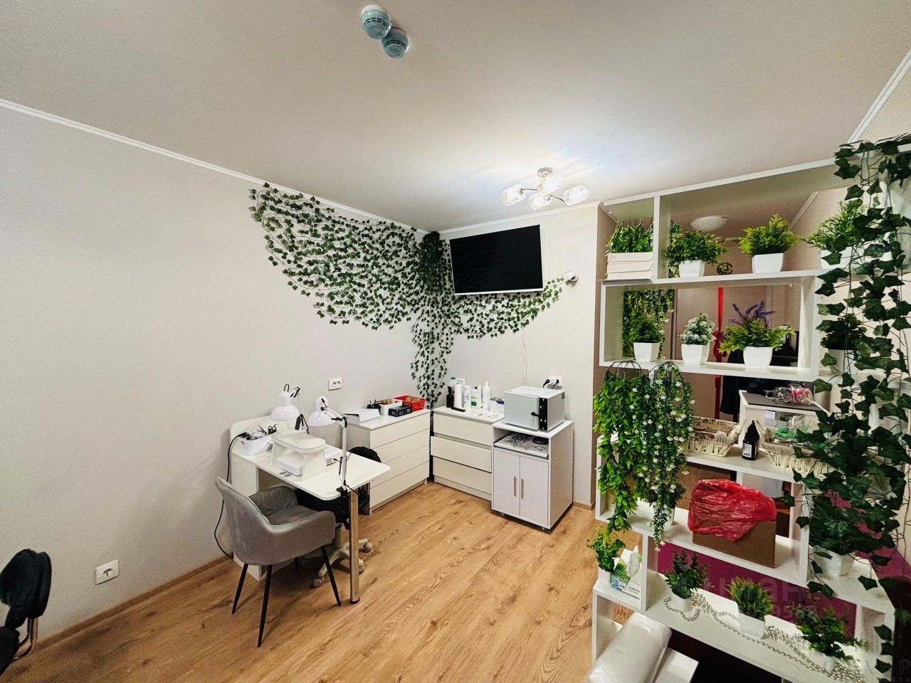 Помещение: светлое, уютное, продумано до мелочей — идеально подойдёт для комфортной работы и приёма клиентов. В кабинете есть рабочее место для маникюра, удобное кресло для педикюра, качественное освещение, системы хранения и всё необходимое оборудование.