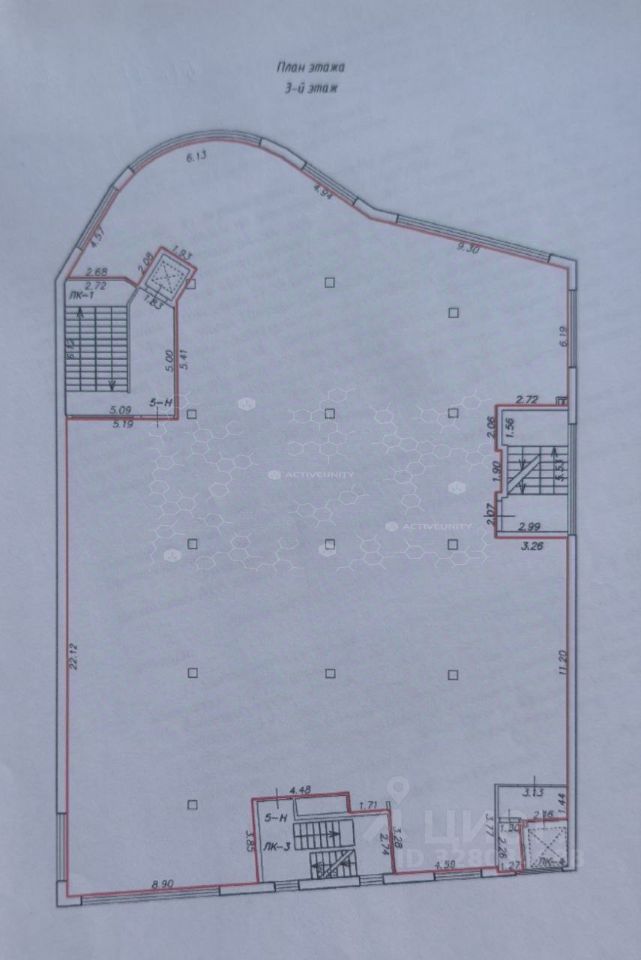 Предлагаемая площадь - 636,6 м2 расположена на 3-м этаже торгового комплекса