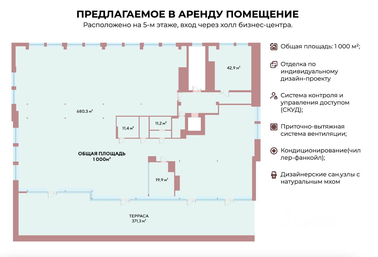 Этаж полностью в распоряжении арендатора, обеспечивая безопасность и приватность.