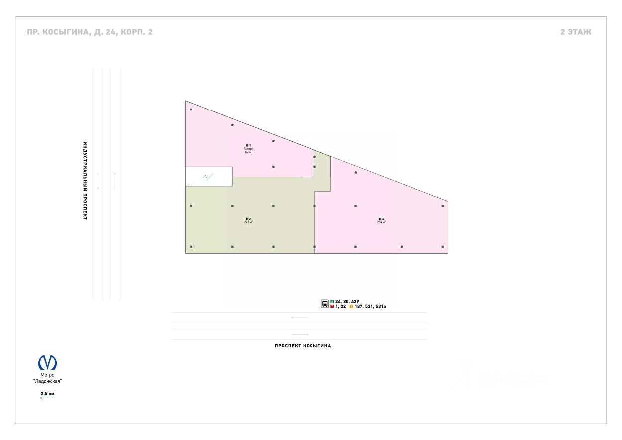 Сдается в аренду помещение (В2) 235 кв. м. на 2-ом этаже в торговом центре на пр. Косыгина, д. 24.