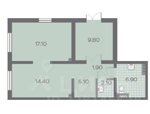 Общая площадь: 57,7 кв. м