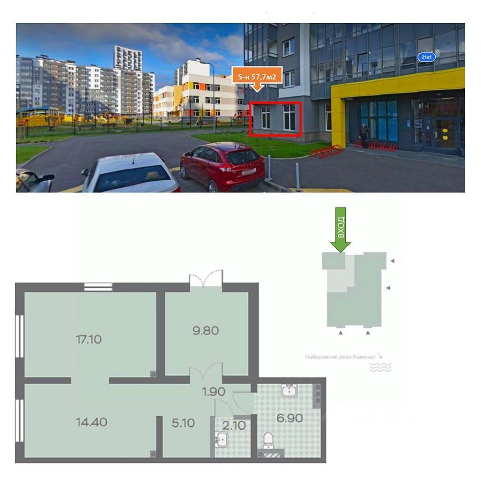 Адрес: Санкт-Петербург, набережная реки Каменки, д21 к1 Номер помещения: 5-н/1-н